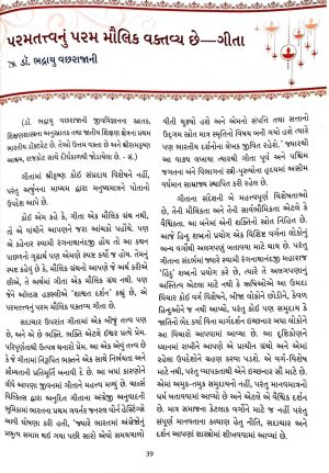 કોઈ એમ કહે કે, ગીતા એક મૌલિક ગ્રંથ નથી, તો એ વાંચીને આપણને જરા આંચકો પહોંચે. પણ એ કહેનાર સ્વામી રંગનાથાનંદજી હોય તો આ કથન પાછળનો ગુઢાર્થ પણ એમણે સ્પષ્ટ કર્યો જ હોય. તેમનું સ્પષ્ટ કહેવું છે કે, મૌલિક ગ્રંથનો આપણે જે અર્થ કરીએ છીએ તે અર્થમાં ગીતા એક મૌલિક ગ્રંથ નથી. પણ જેને ઓલ્ડસ હક્સ્લીએ ‘શાશ્વત દર્શન’ કહ્યું છે, એ પરમ તત્વનું પરમ મૌલિક વક્તવ્ય ગીતા છે.